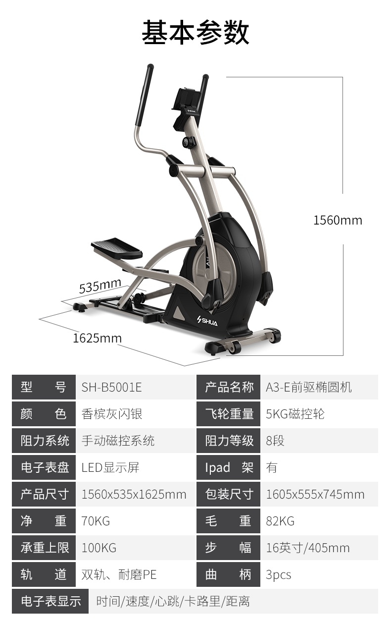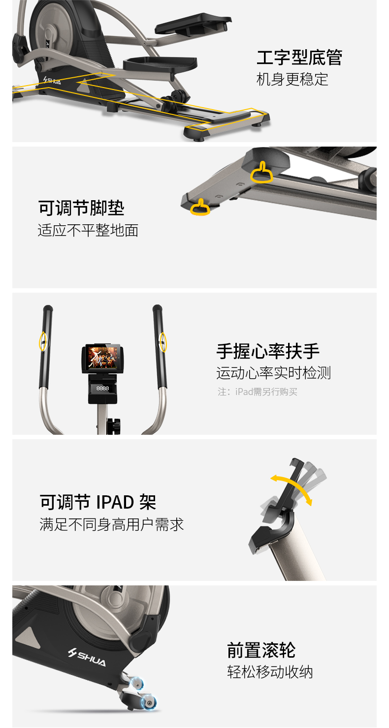 SHUA舒華 橢圓機(jī)家用靜音磁控室內(nèi)健身器械 太空漫步機(jī)SH-B5001E