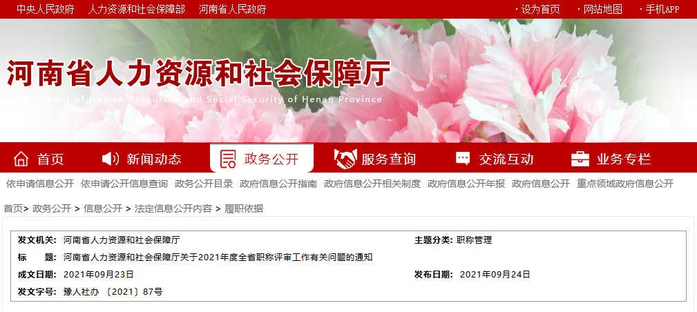 河南省人力資源和社會保障廳關于2021年度全省職稱評審工作有關問題的通知