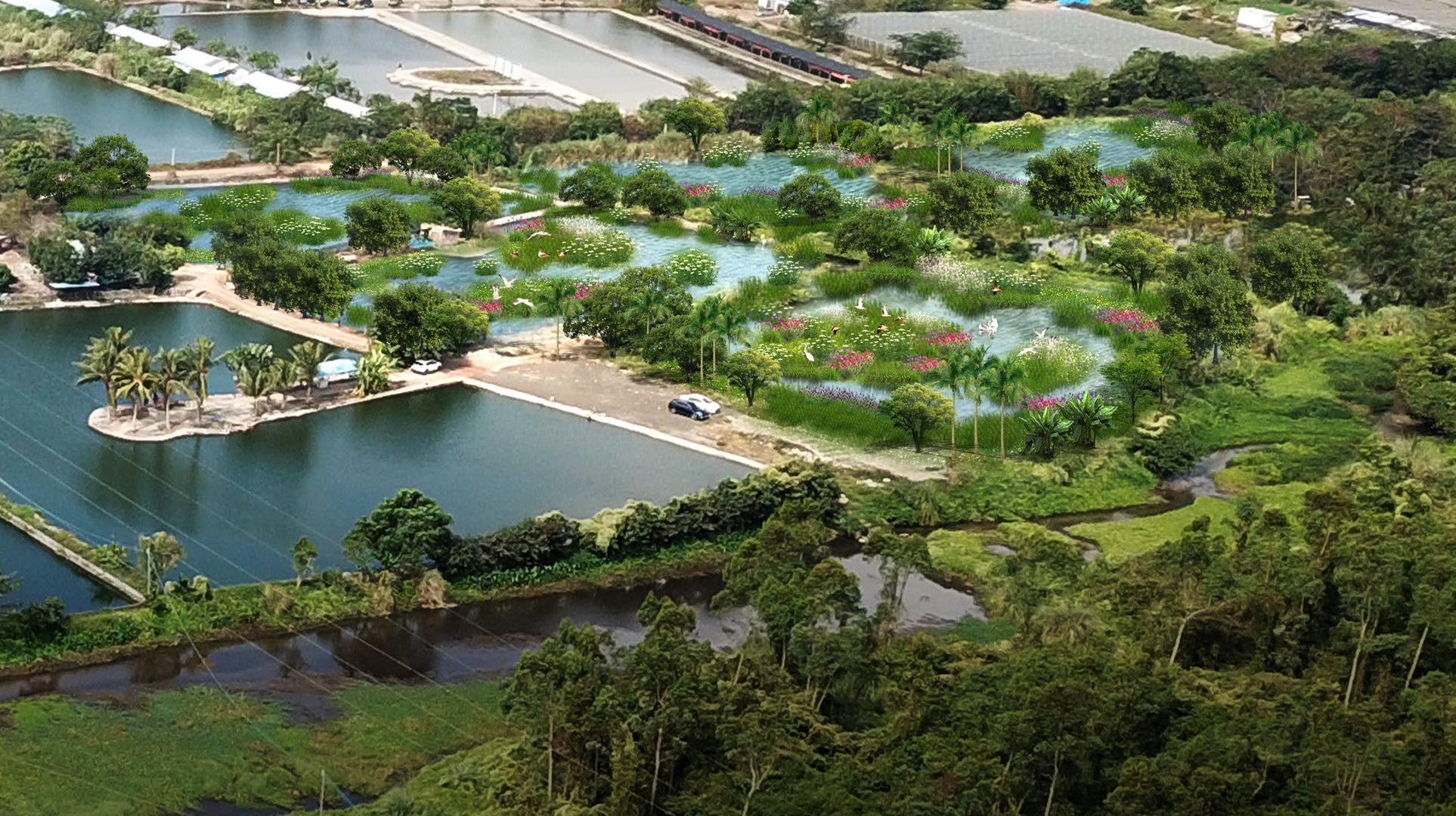 項目位于海南省海口市椰海大道北側的上游河道生態修復區以及椰海大道南側的濕地公園展示區和河源保育區。